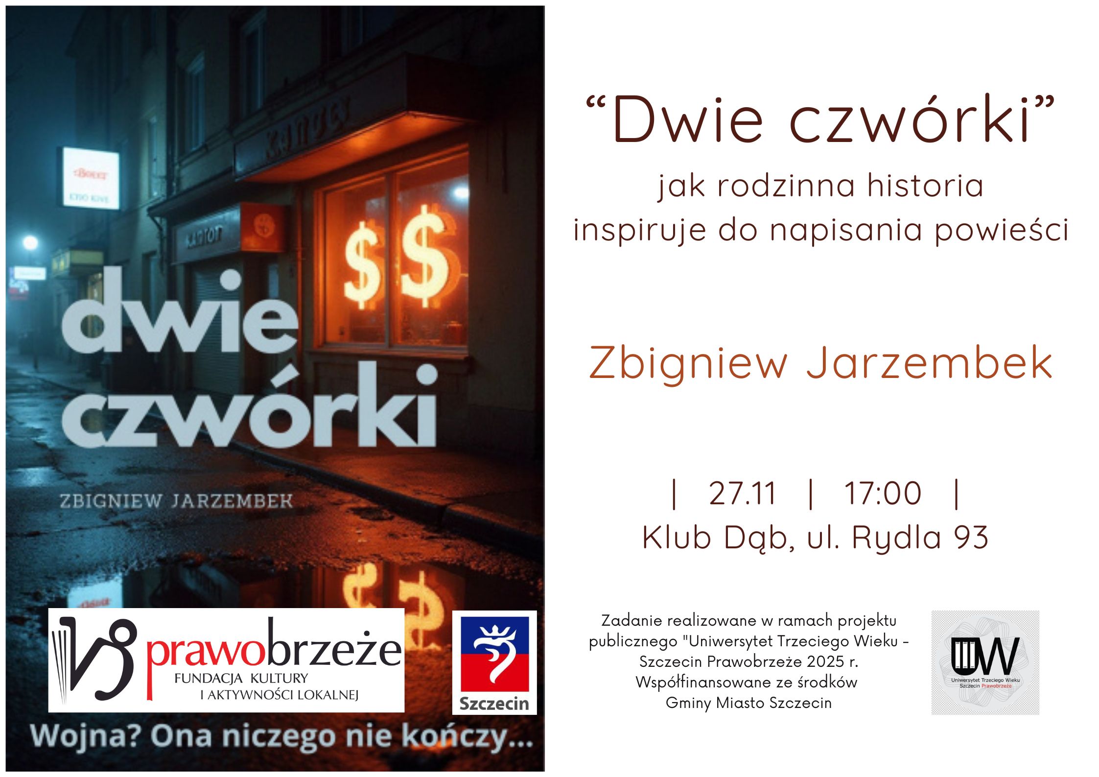 Uniwersytet Trzeciego Wieku- Szczecin Prawobrzeże zaprasza wszystkich chętnych na pasjonujące spotkanie autorskie z Zbigniewem Jarzembkiem, autorem książki” Dwie czwórki”. 27.11.25 o godz. 17.00 w Klubie […]