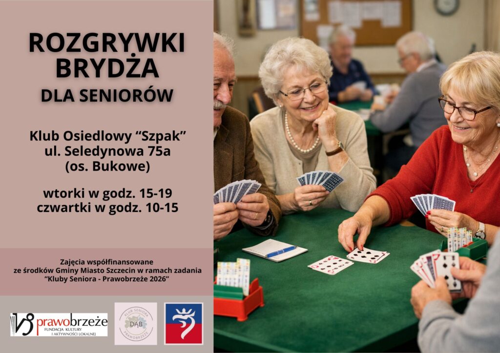Brydżyści spotykają się w Klubie Osiedlowym „Szpak” przy ul. Seledynowej 75a we wtorki w godz. 15-19 i czwartki w godz. 10-15.