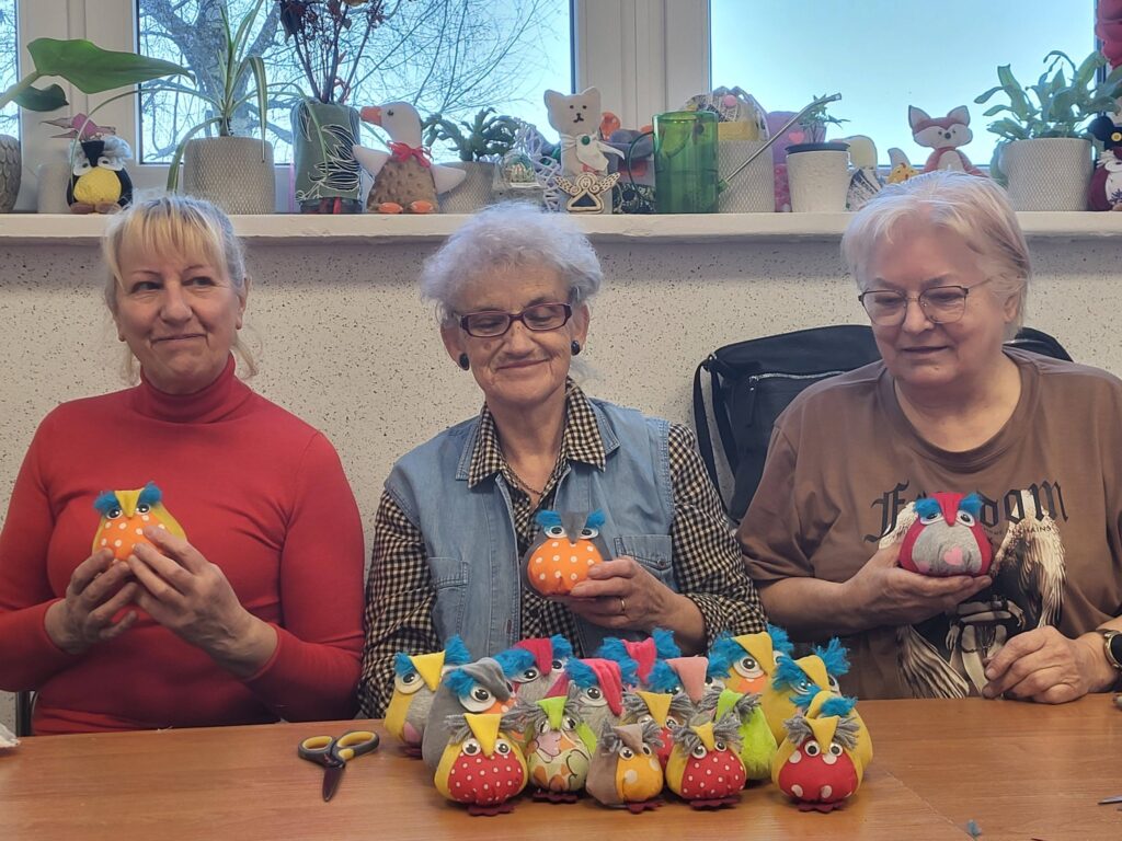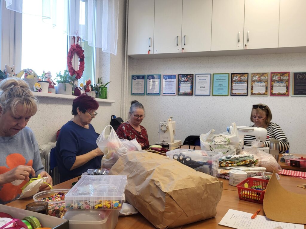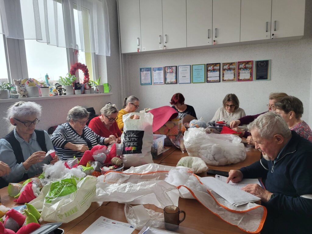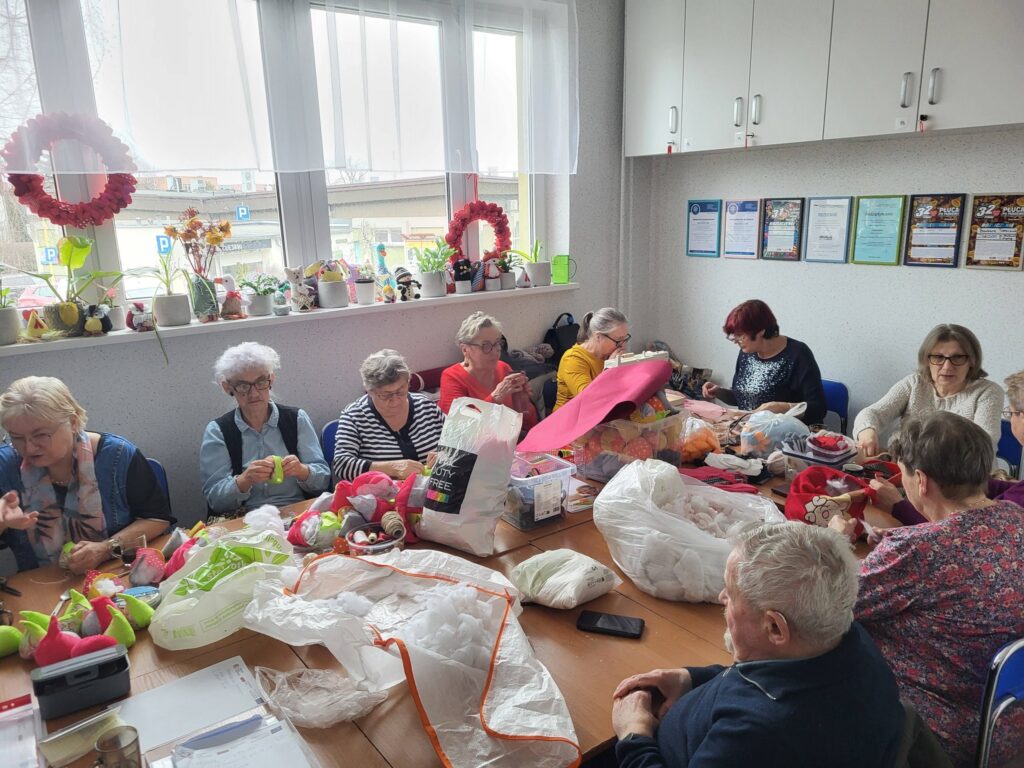 Seniorzy z Klubu „Dąb” spotykają się regularnie, by szyć serduszka i maskotki dla dzieci przebywających w szpitalach, tym razem trafiły także do osób samotnych i potrzebujących. Seniorzy robią to bezinteresownie – z własnych materiałów, z potrzeby serca i chęci pomagania innym.