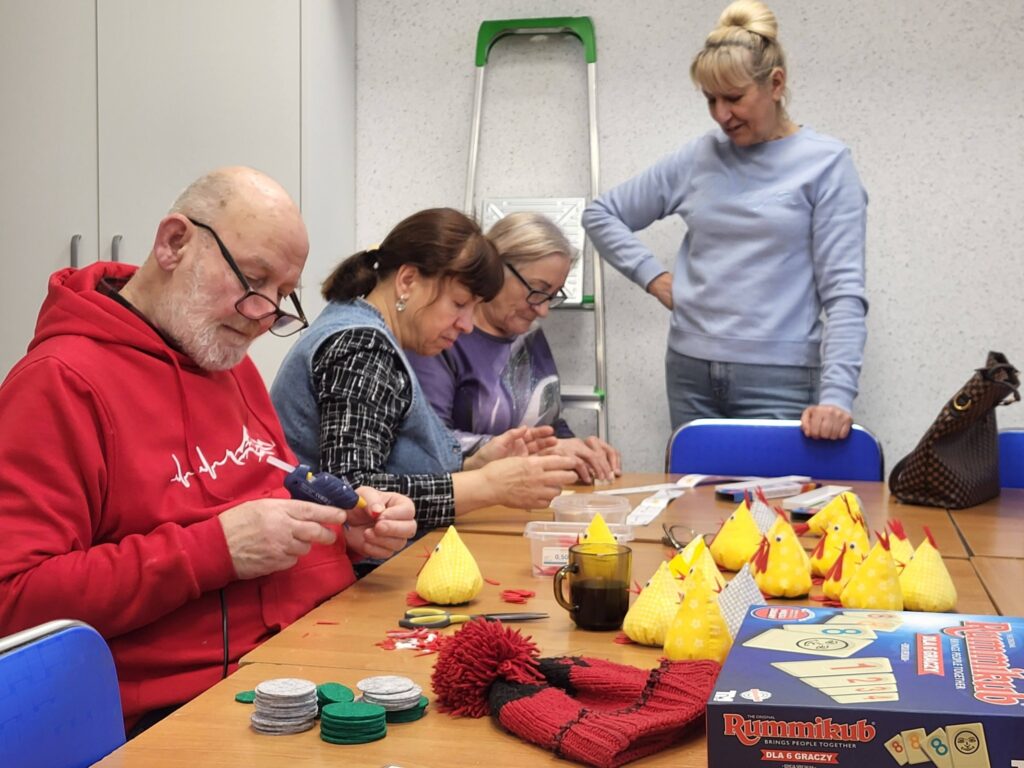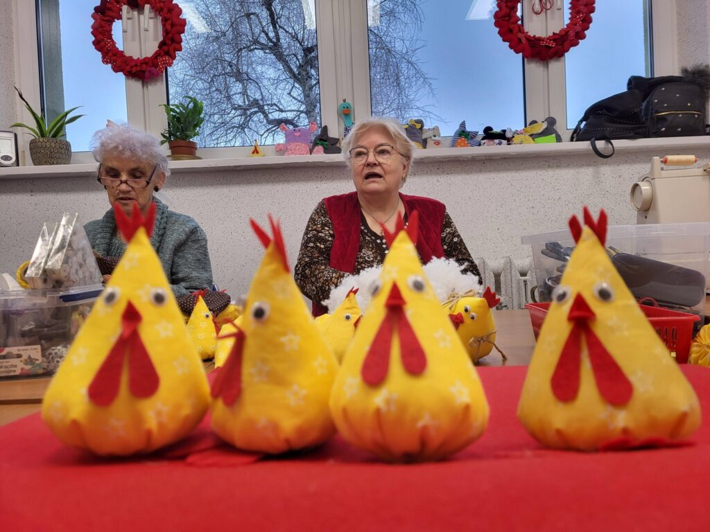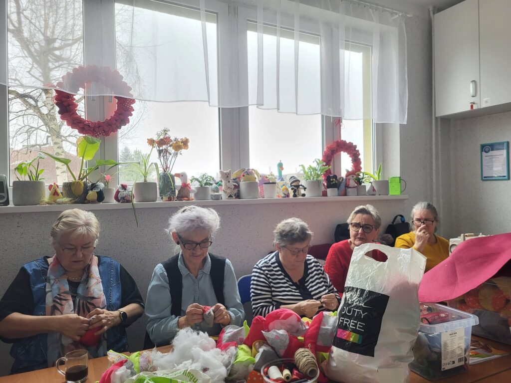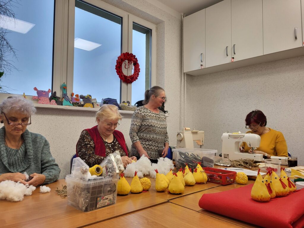Seniorzy z Klubu „Dąb” spotykają się regularnie, by szyć serduszka i maskotki dla dzieci przebywających w szpitalach, tym razem trafiły także do osób samotnych i potrzebujących. Seniorzy robią to bezinteresownie – z własnych materiałów, z potrzeby serca i chęci pomagania innym.