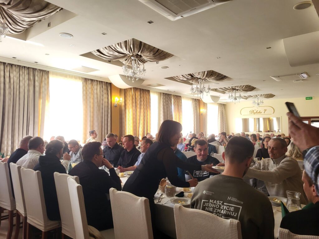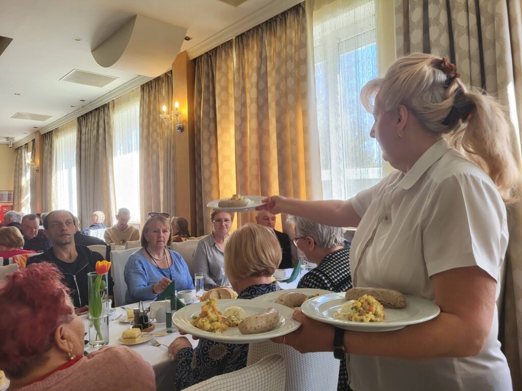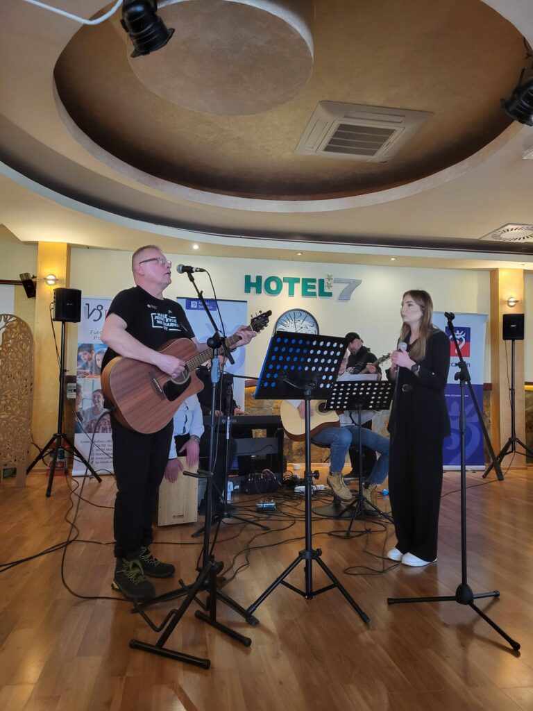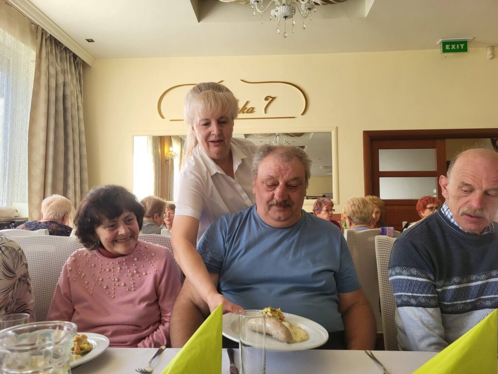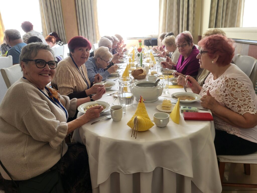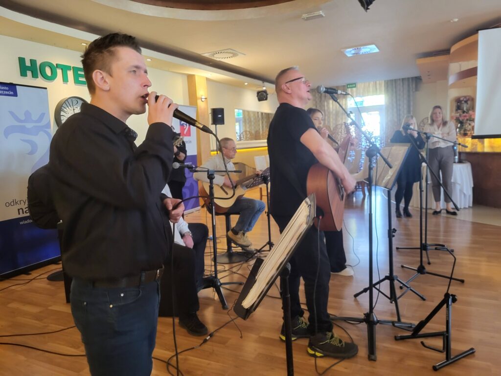 Nie zabrakło wspólnego śpiewu i wspaniałej oprawy muzycznej w wykonaniu zespołu ze Spółdzielni Socjalnej „Meritum”. To było spotkanie pełne radości, śmiechu i wzajemnej życzliwości – prawdziwy dowód, że mały gest może wiele zmienić! 💛